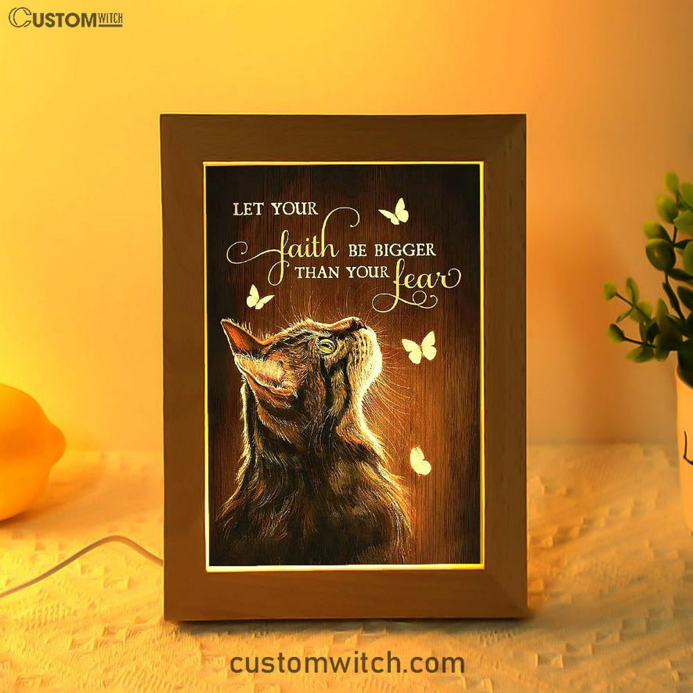 Let Your Faith Tabby Cat White Butterfly Frame Lamp Art - Christian Art Decor - Gift For Cat Lover
