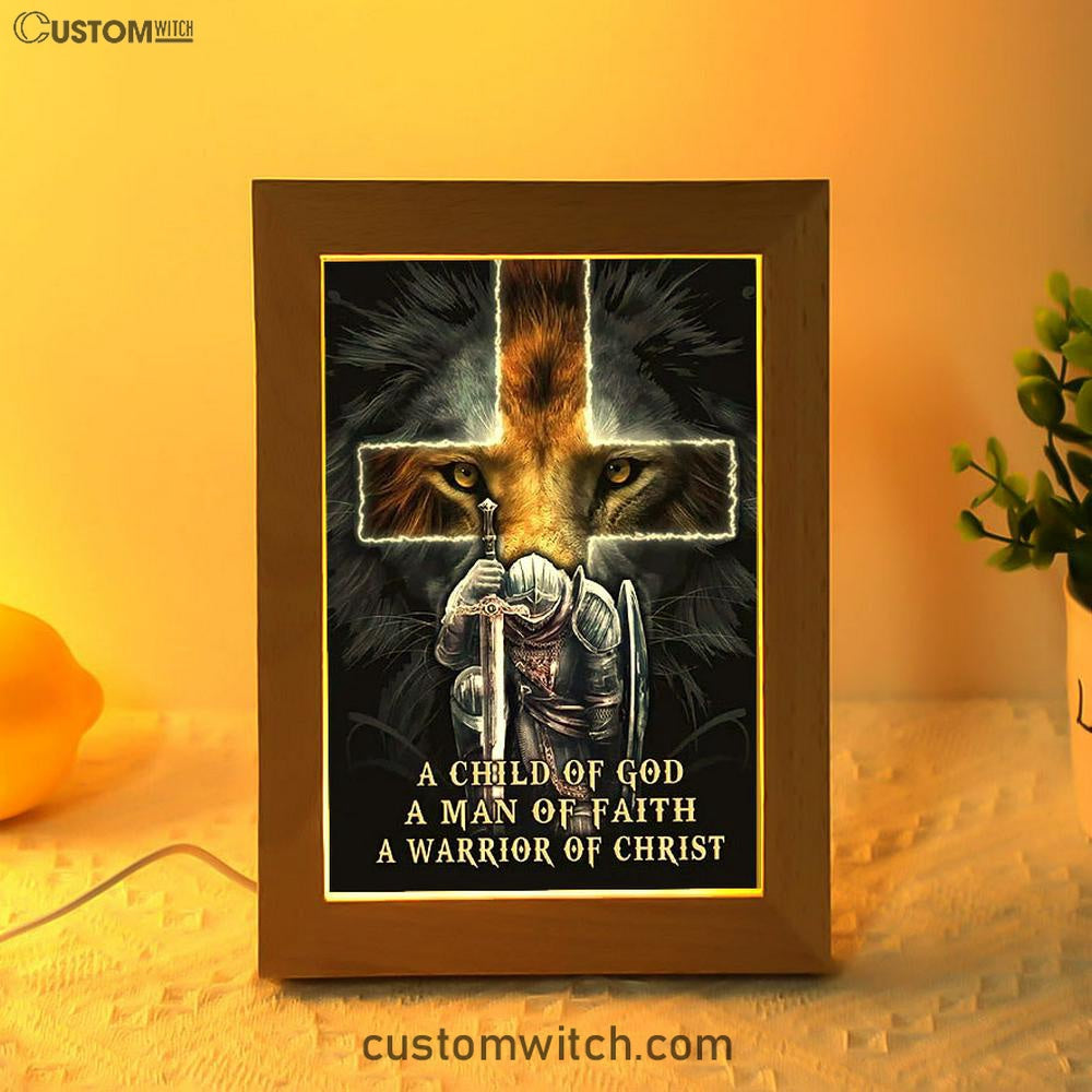 Lion A Child Of God A Man Of Faith A Warrior Of Christ Frame Lamp Art - Christian Home Decor - Religious Art