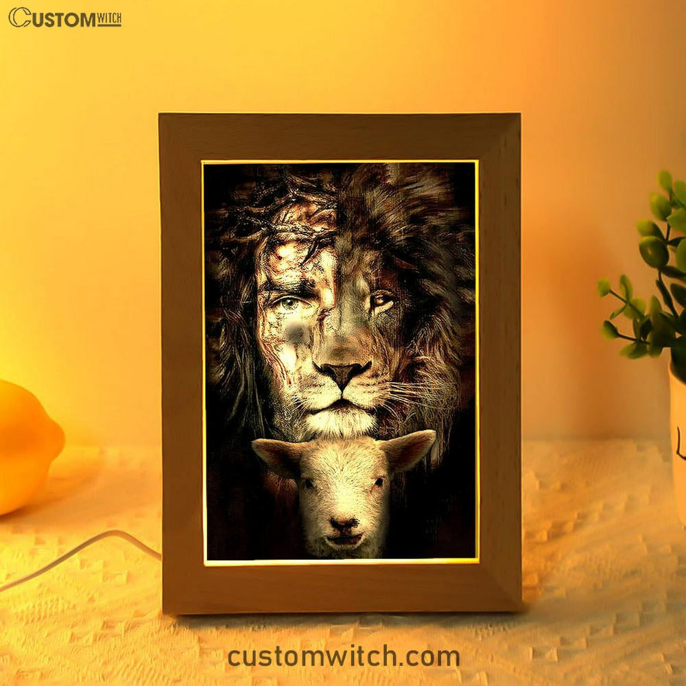 Lion And Lamb Frame Lamp Art Prints - Christian Frame Lamp - Religious Gifts Night Light