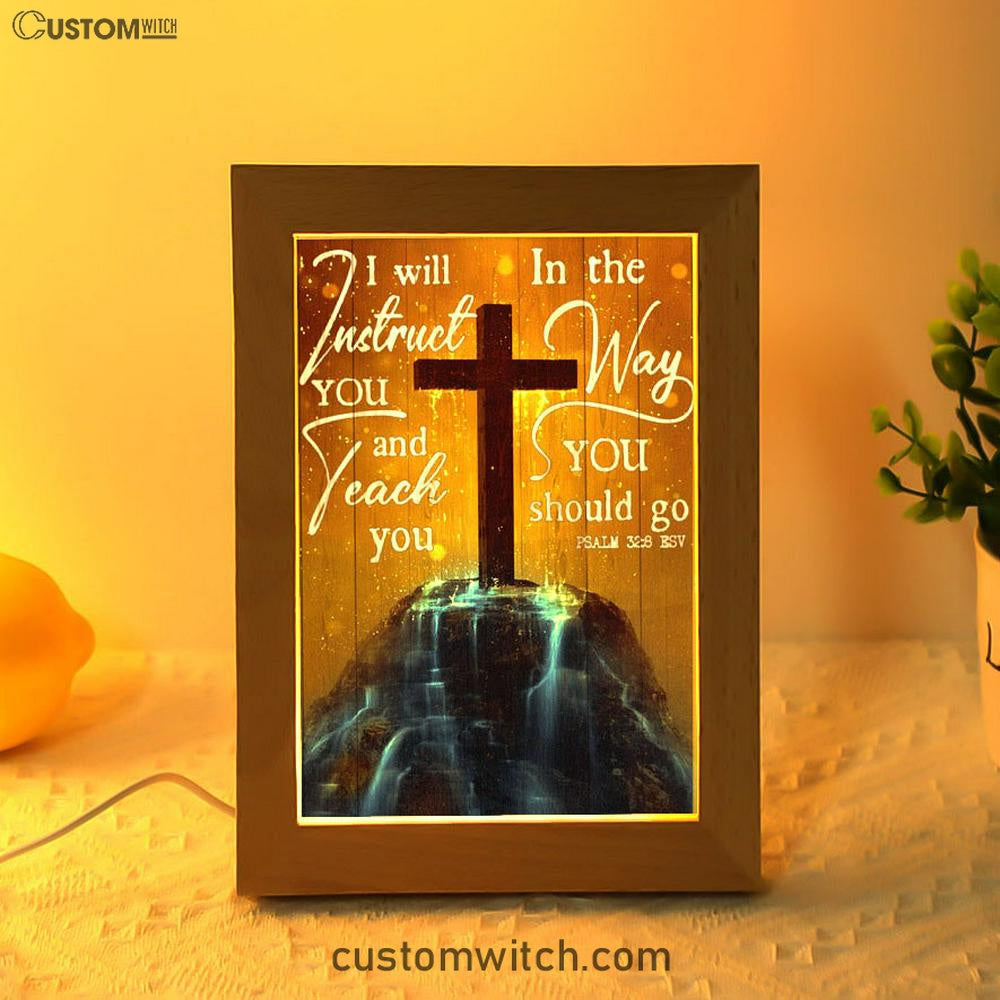 I Will Instruct You And Teach You In The Way You Should Go Cross Frame Lamp Art - Christian Art Decor - Religious Gifts Night Light
