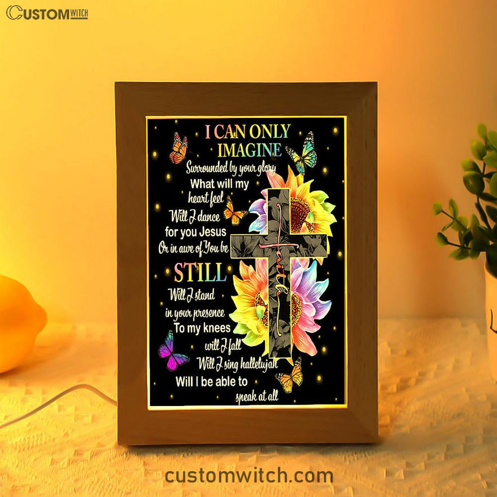 I Can Only Imagine Flower Cross Butterfly Frame Lamp Art - Christian Art Decor - Religious Gifts Night Light