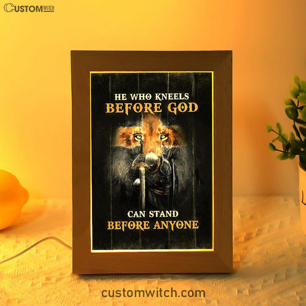 He Who Kneels Before God Can Stand Before Anyone Frame Lamp Art - Bible Verse Art - Christian Inspirational Decor
