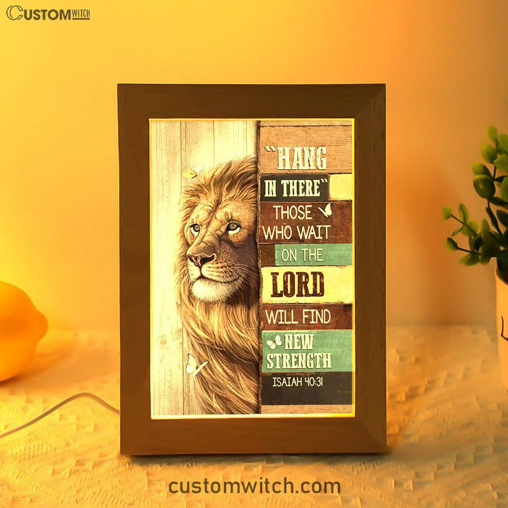 Hang In There Lion White Butterfly Frame Lamp Art - Bible Verse Art - Christian Inspirational Decor