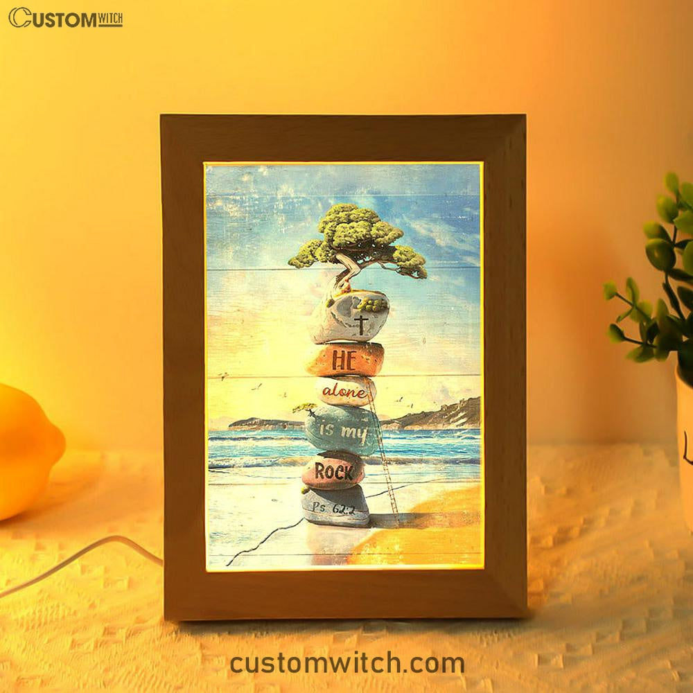 He Alone Is My Rock Rock Cairn Bonsai Frame Lamp Art - Bible Verse Art - Christian Inspirational Decor