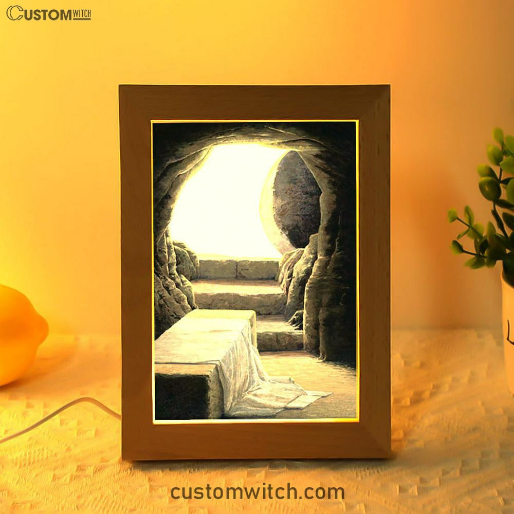 He Is Risen Empty Tomb Frame Lamp Pictures - Christian Frame Lamp Print - Christian Home Decor