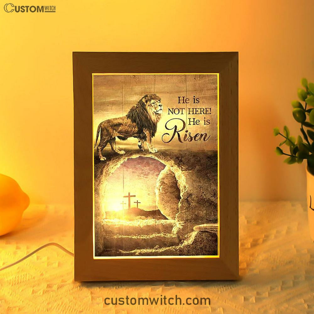 He Is Risen Frame Lamp - The Empty Tomb Lion Frame Lamp Art - Bible Verse Art - Christian Inspirational Decor