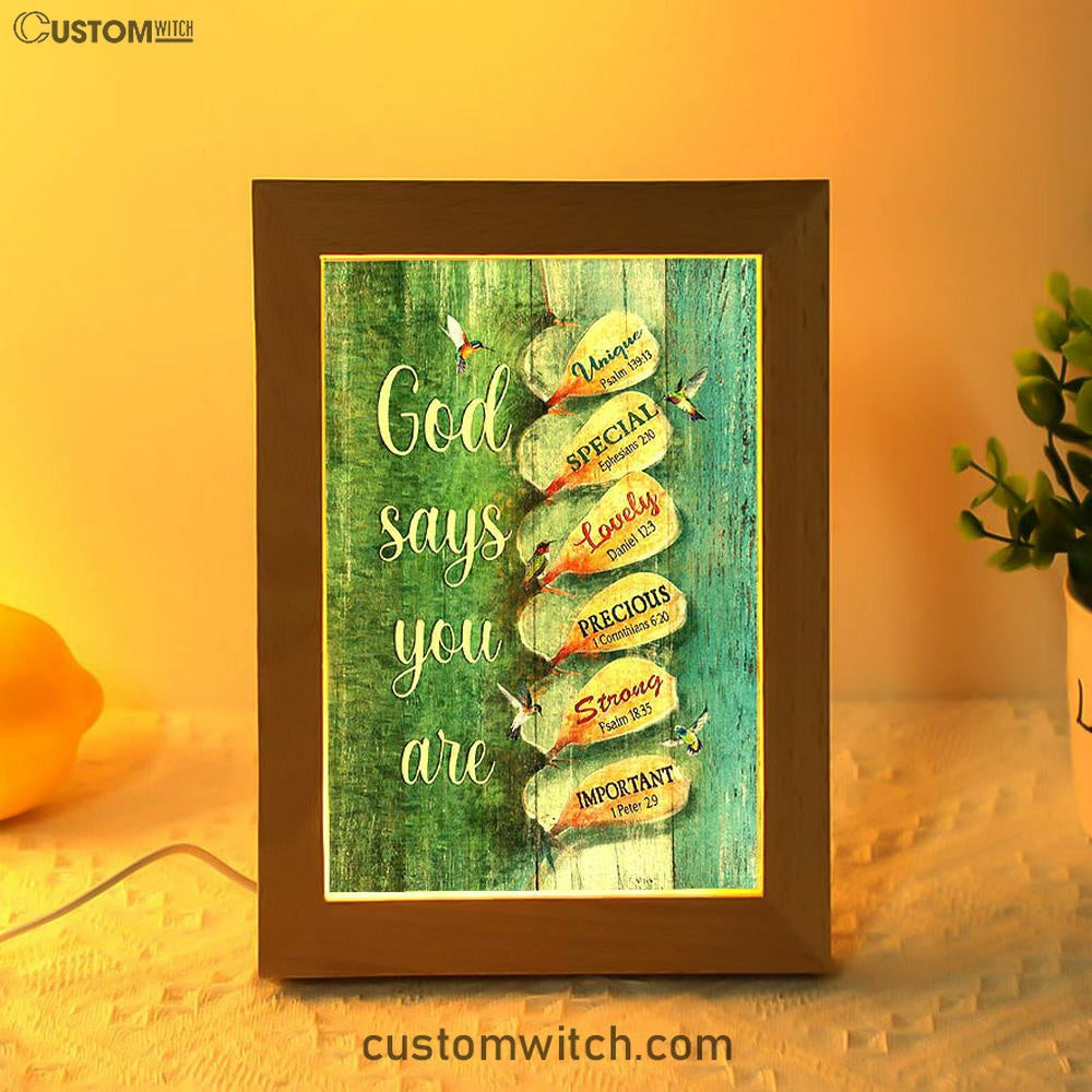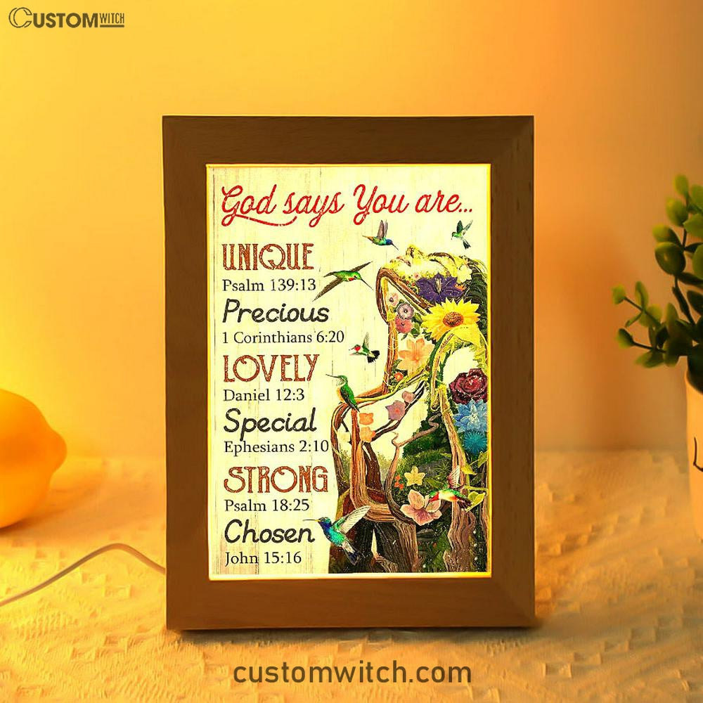 God Says You Are Flower Frame Lamp Art - Christian Frame Lamp - Religious Gifts Night Light