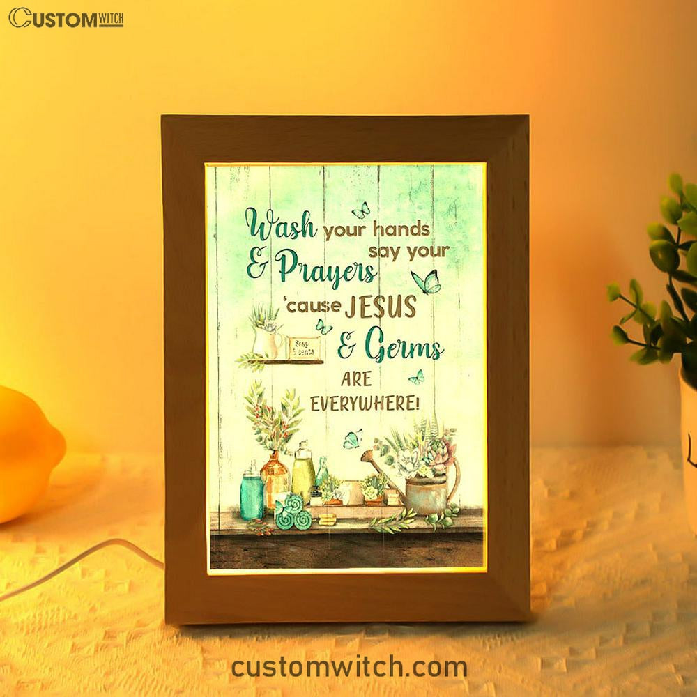 Cause Jesus And Germs Are Everywhere Bathroom Blue Butterfly Frame Lamp Art - Christian Night Light