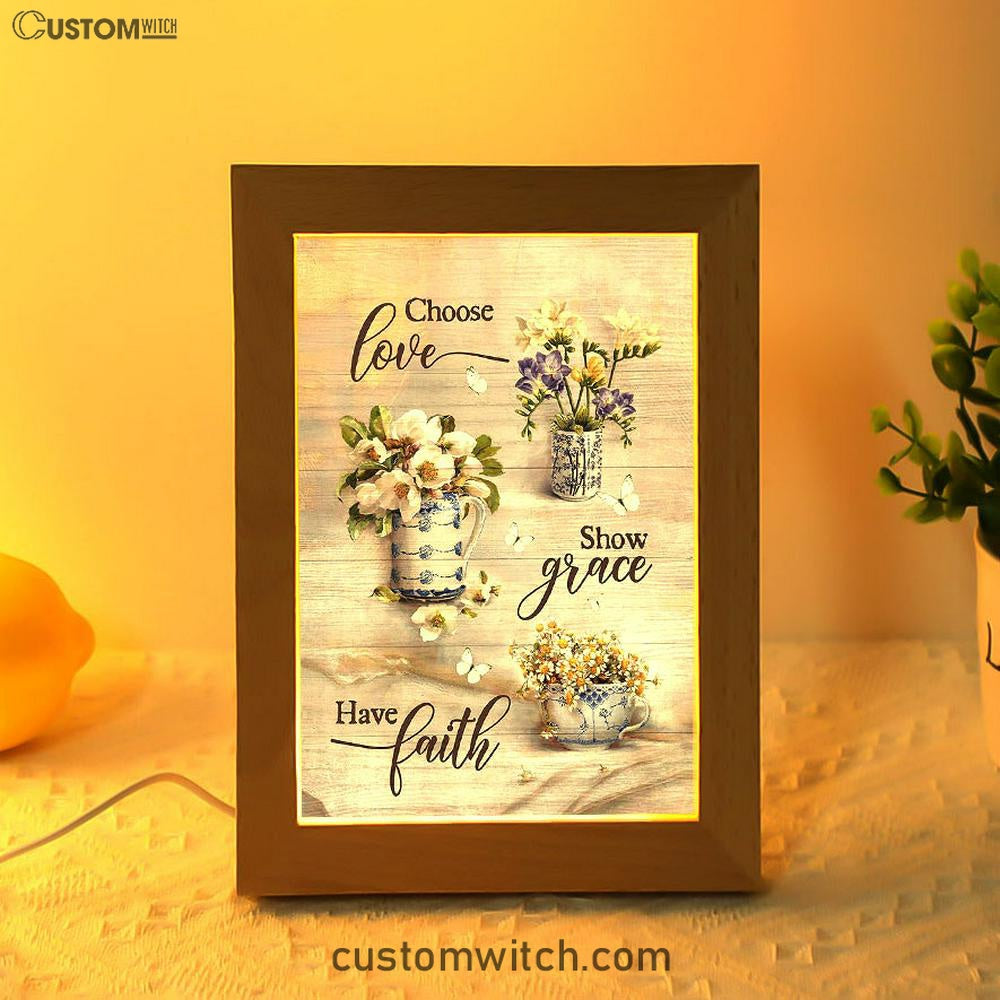 Chose Love Show Grace Have Faith Vintage Flower Frame Lamp Art - Christian Art - Bible Verse Art - Religious Home Decor