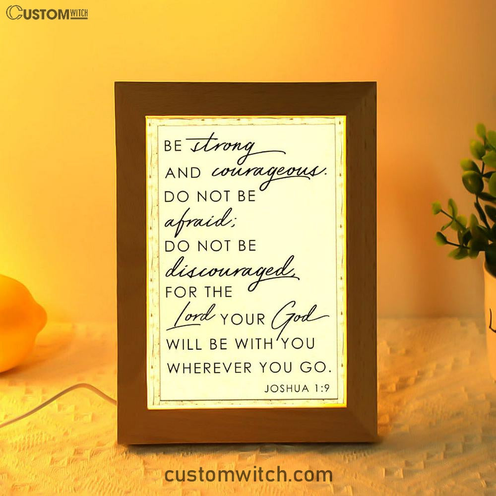 Christian Be Strong And Courageous Joshua 19 Frame Lamp Prints - Bible Verse Decor - Scripture Art