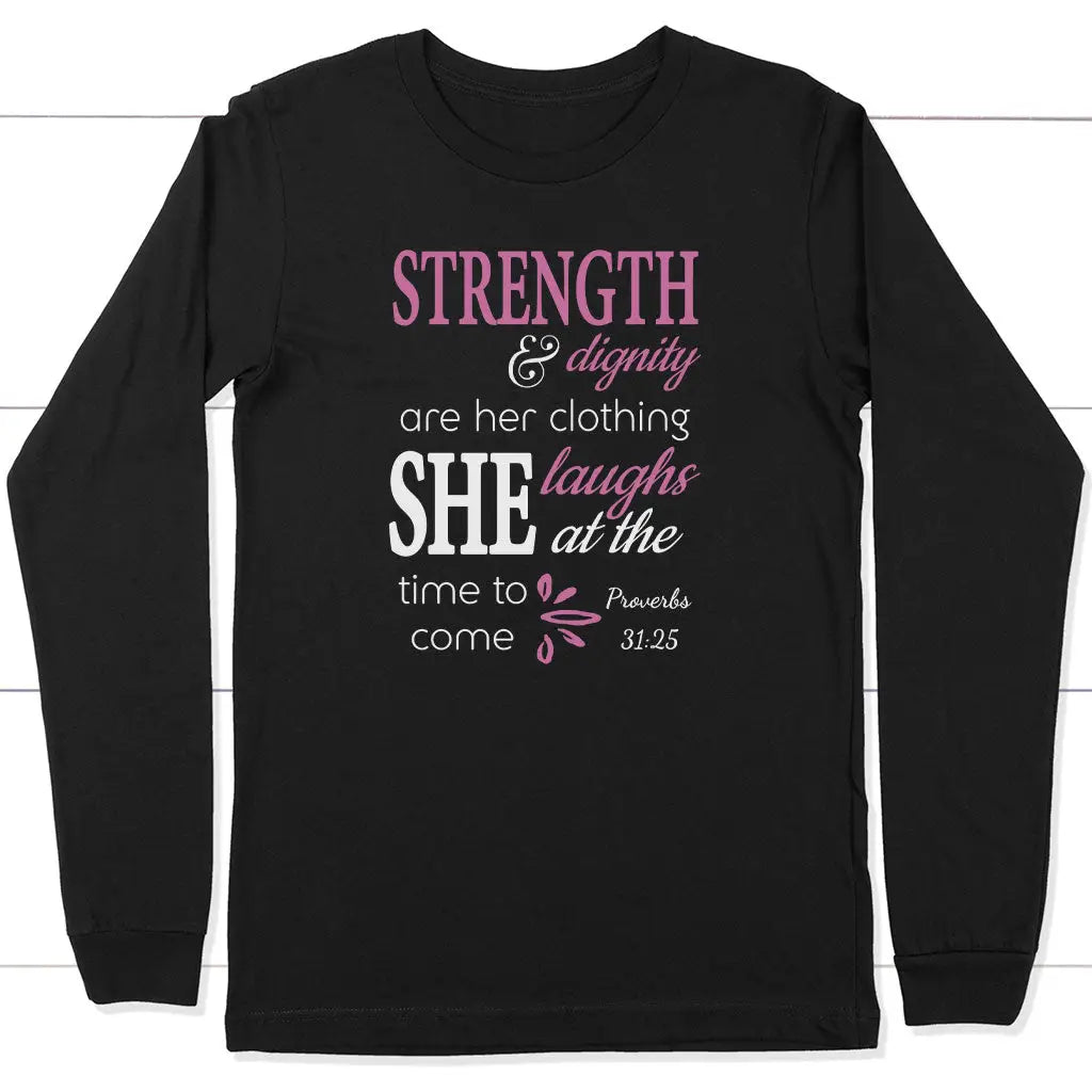 Proverbs 31:25 Strength And Dignity Are Her Clothing Long Sleeve Shirt