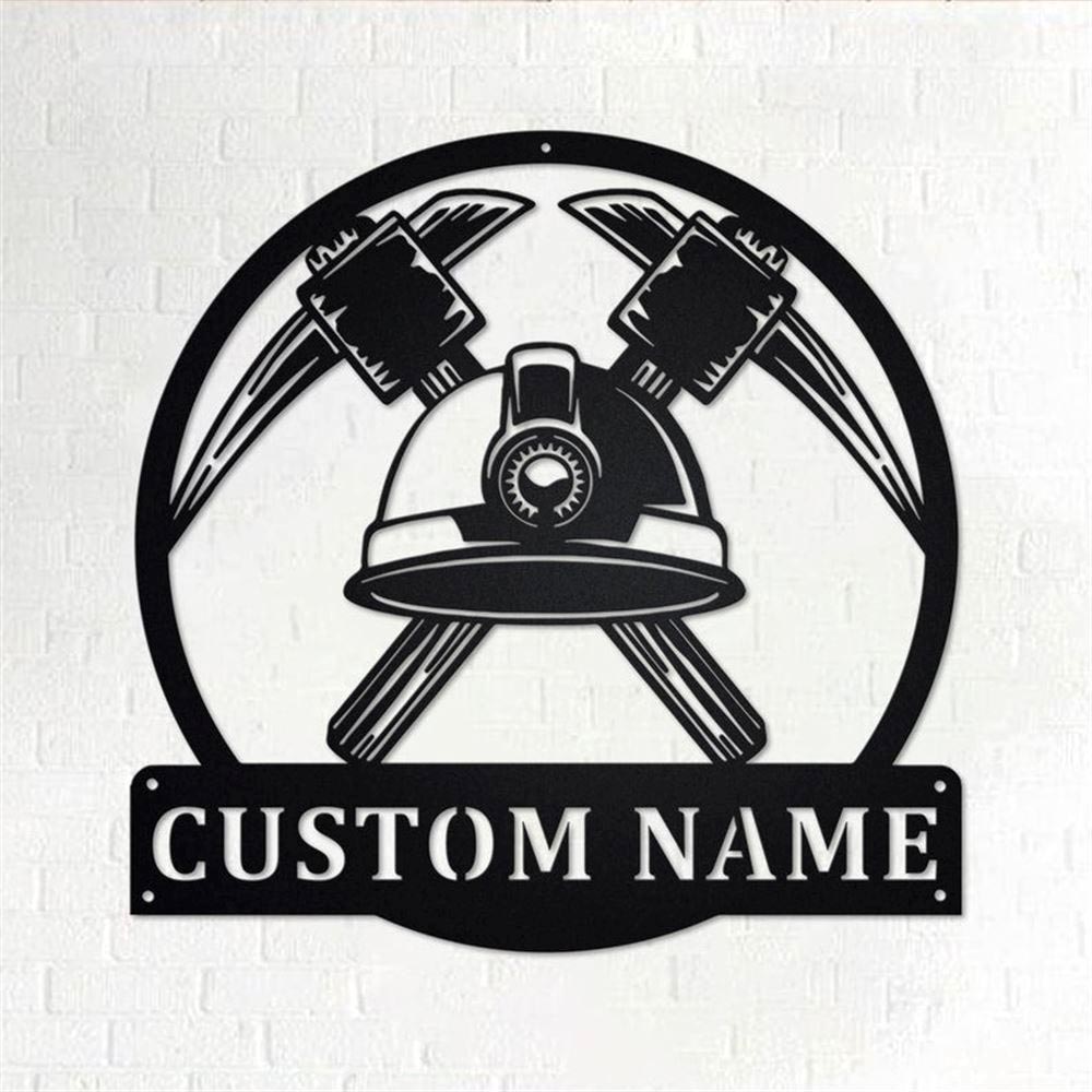 Personalized Metal Monogram Sign, Miner Worker Tools Metal Wall Art, Miner Name Sign, Mining Metal Home Decor