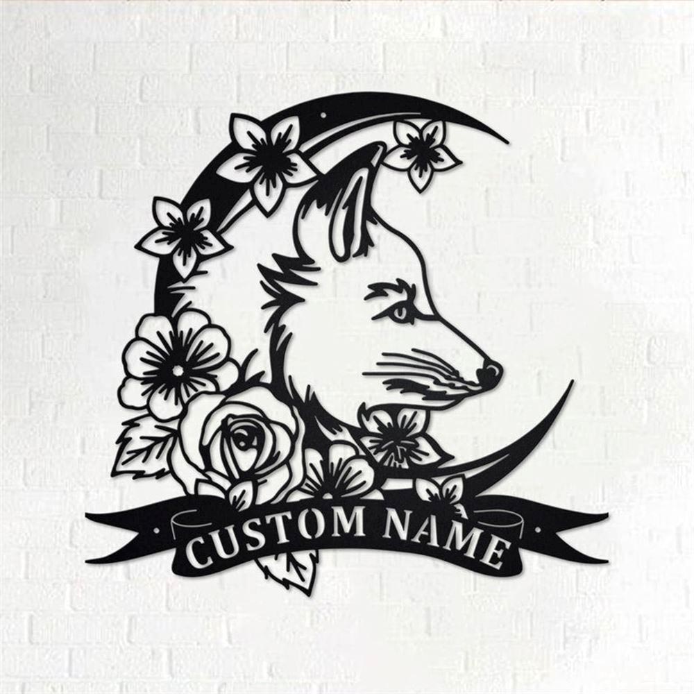 Personalized Metal Monogram Sign, Moon Fox Metal Wall Art, Fox Name Sign, Fox Metal Home Decor