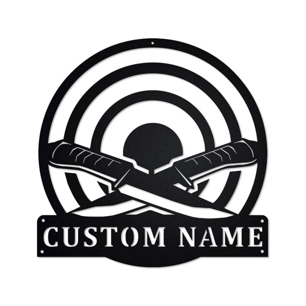 Personalized Metal Monogram Sign, Knife Throwing Metal Sign, Knife Throwing Metal Wall Art, Knife Throwing Metal Wall Decor, Knife