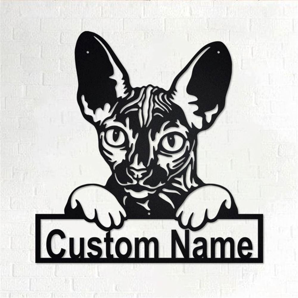 Personalized Metal Monogram Sign, Sphynx Cat Metal Wall Art, Sphynx Cat Name Sign, Sphynx Cat Metal Home Decor