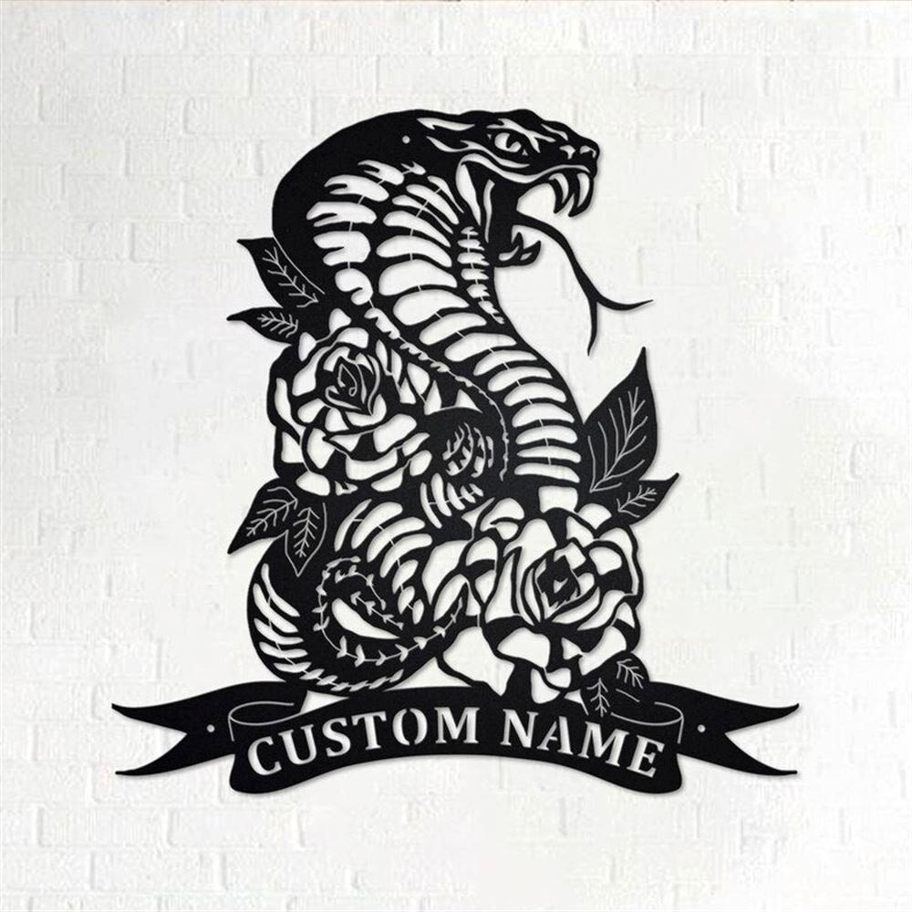Personalized Metal Monogram Sign, Cobra Snake & Roses Metal Wall Art, Cobra Snake Name Sign, Cobra Snake Home Decor