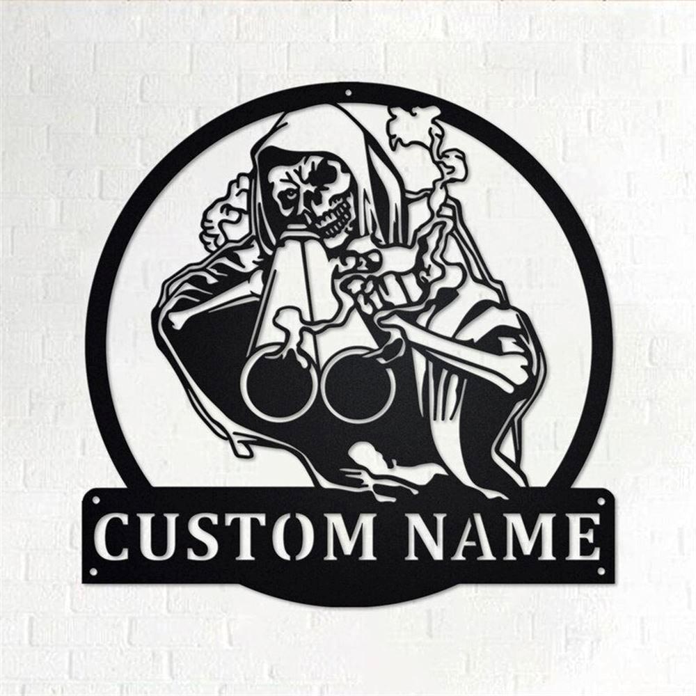 Personalized Metal Monogram Sign, Grim Reaper Shotgun Hunting Metal Wall Art, Shot Hunting Name Sign, Shot Hunting Home Decor