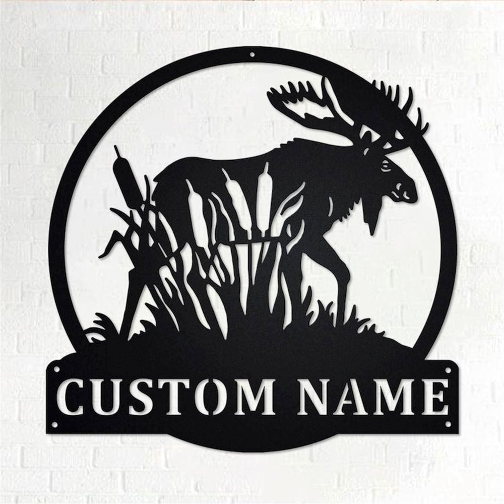 Personalized Metal Monogram Sign, Moose with Cattails Metal Wall Art, Moose Hunter Name Sign, Moose Metal Home Decor