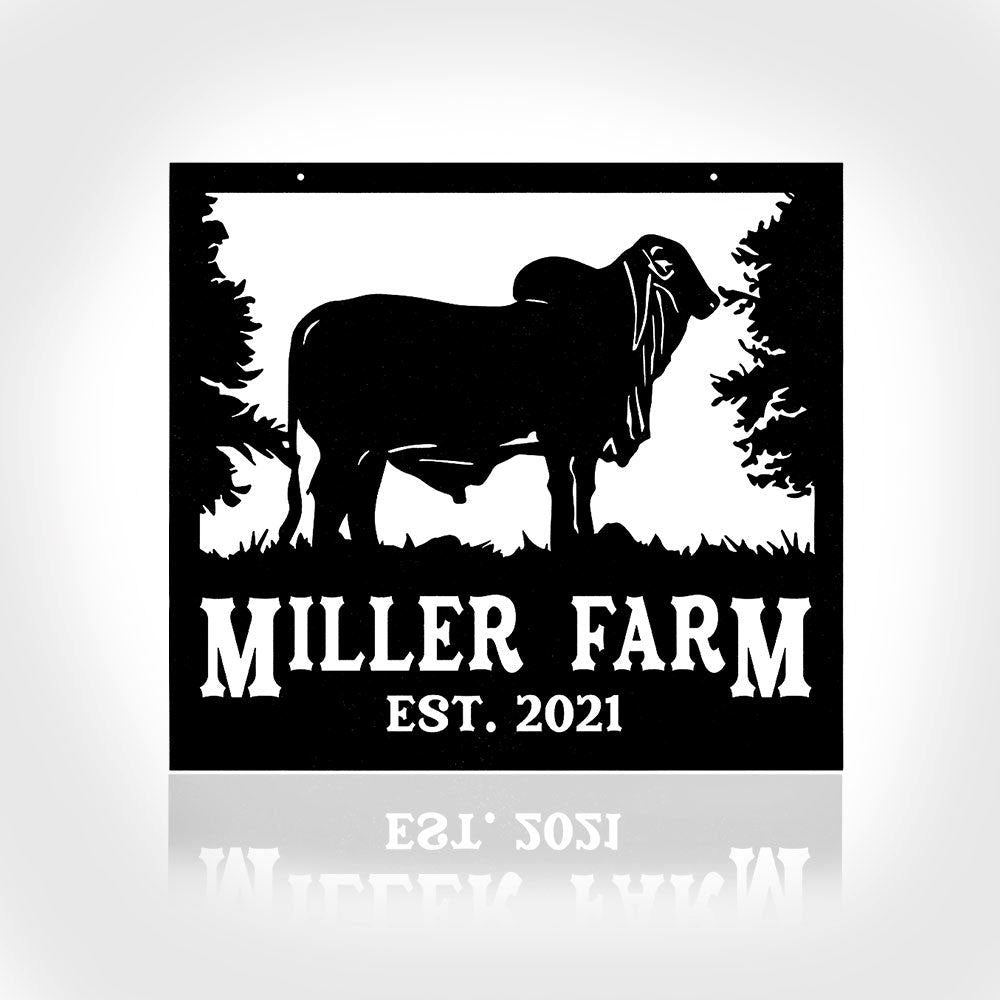 Custom Metal Farm Sign, Brahman Cattle Cow Outdoor Farmhouse Ranch Front Gate Wall Decor Art, Gift Ideas For Farm Woman, Outdoor Metal Sign Frames