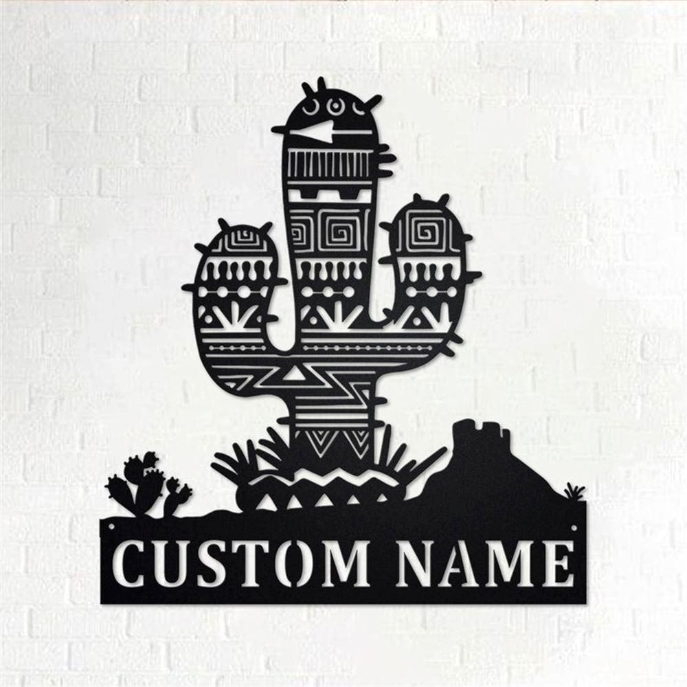 Personalized Metal Monogram Sign, Aztec Cactus Metal Wall Art, Aztec Cactus Name Sign, Cactus Home Decor