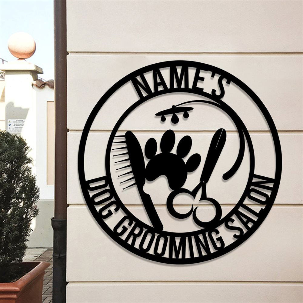 Custom Metal Sign, Pet Grooming Salon Metal Sign, Anniversary Gift, Dog House Sign, Dog Wall Art, Outdoor Sign, Home Decor Sign