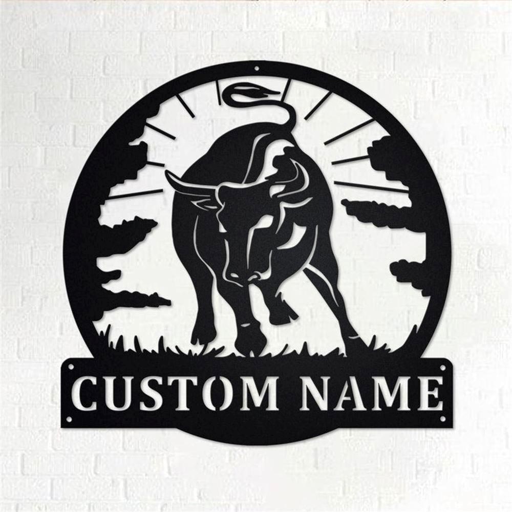 Personalized Metal Monogram Sign, Black Bull Metal Wall Art, Black Bull Name Sign, Black Bull Home Decor