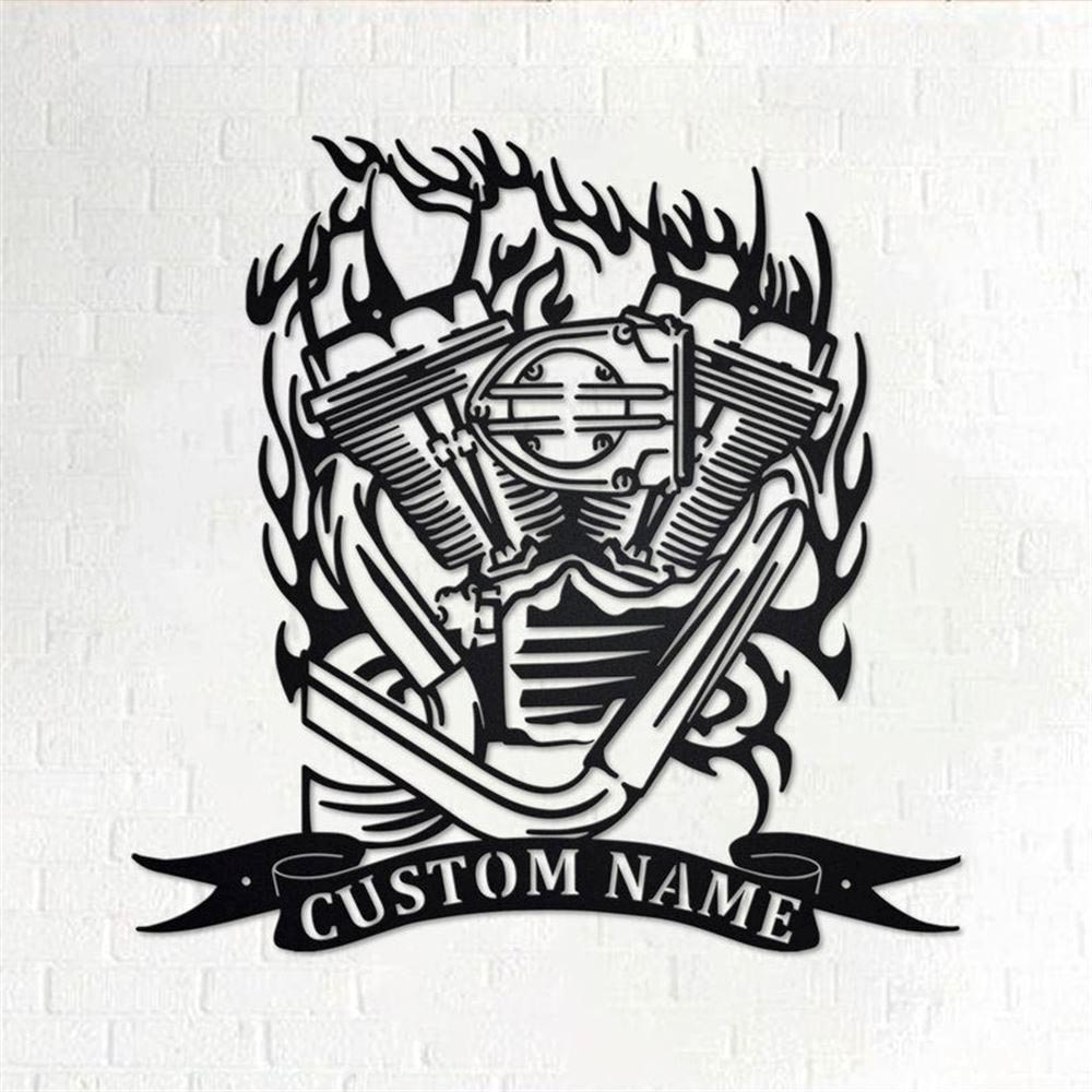 Personalized Metal Monogram Sign, Motorcycle Engine Metal Wall Art, Biker Name Sign, Motor Mechanic Metal Home