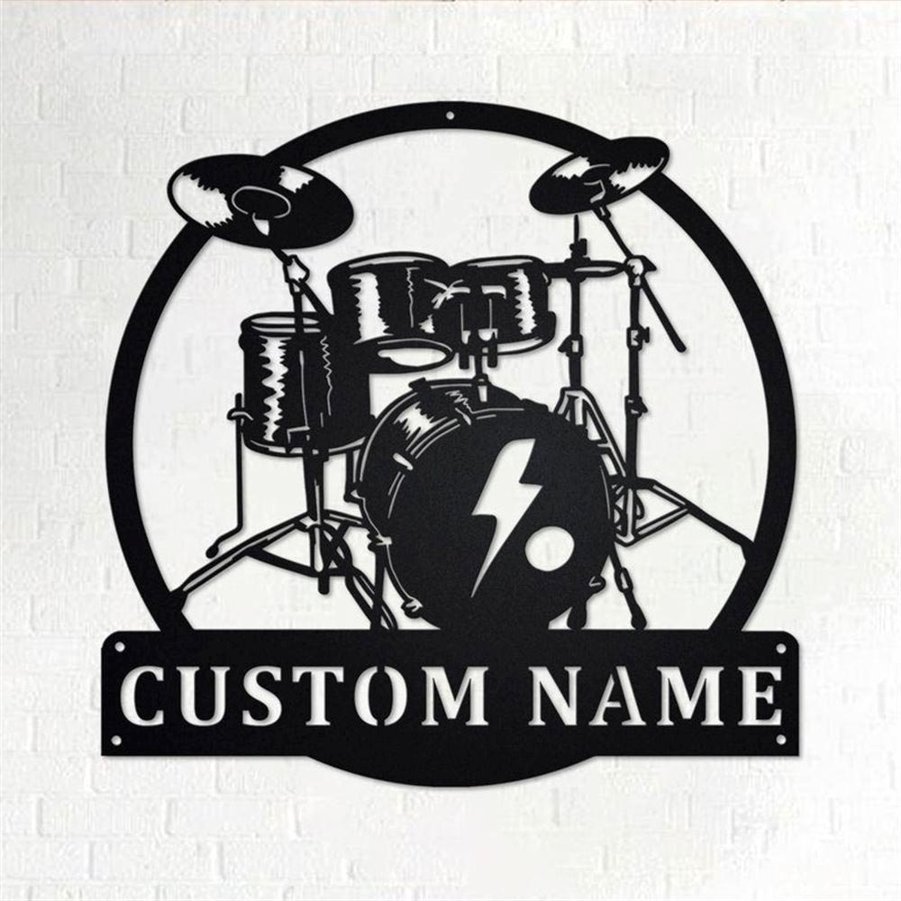Personalized Metal Monogram Sign, Drummer Musical instrument Metal Wall Art, Drummer Name Sign, Drummer Home Decor