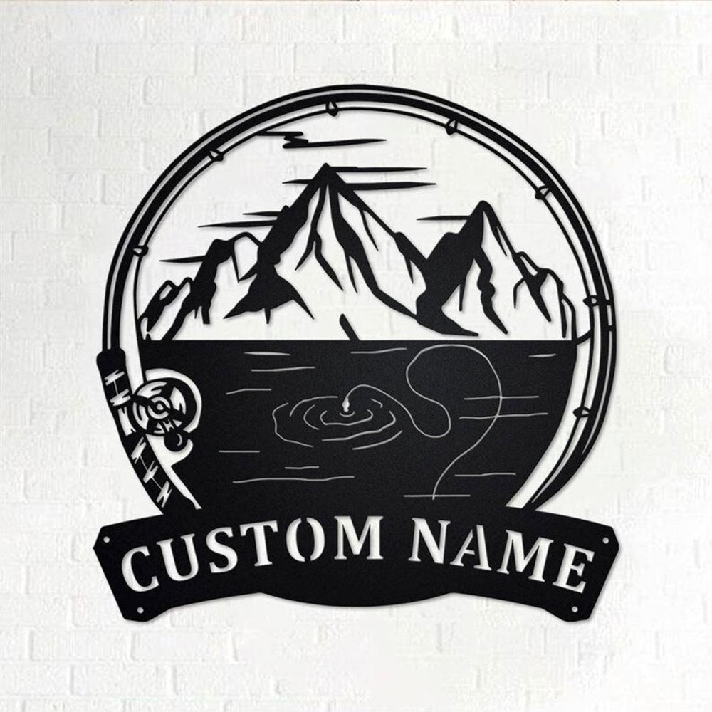 Personalized Metal Monogram Sign, Mountains Fishing Metal Wall Art, Fisher Name Sign, Fishing Metal Home Decor