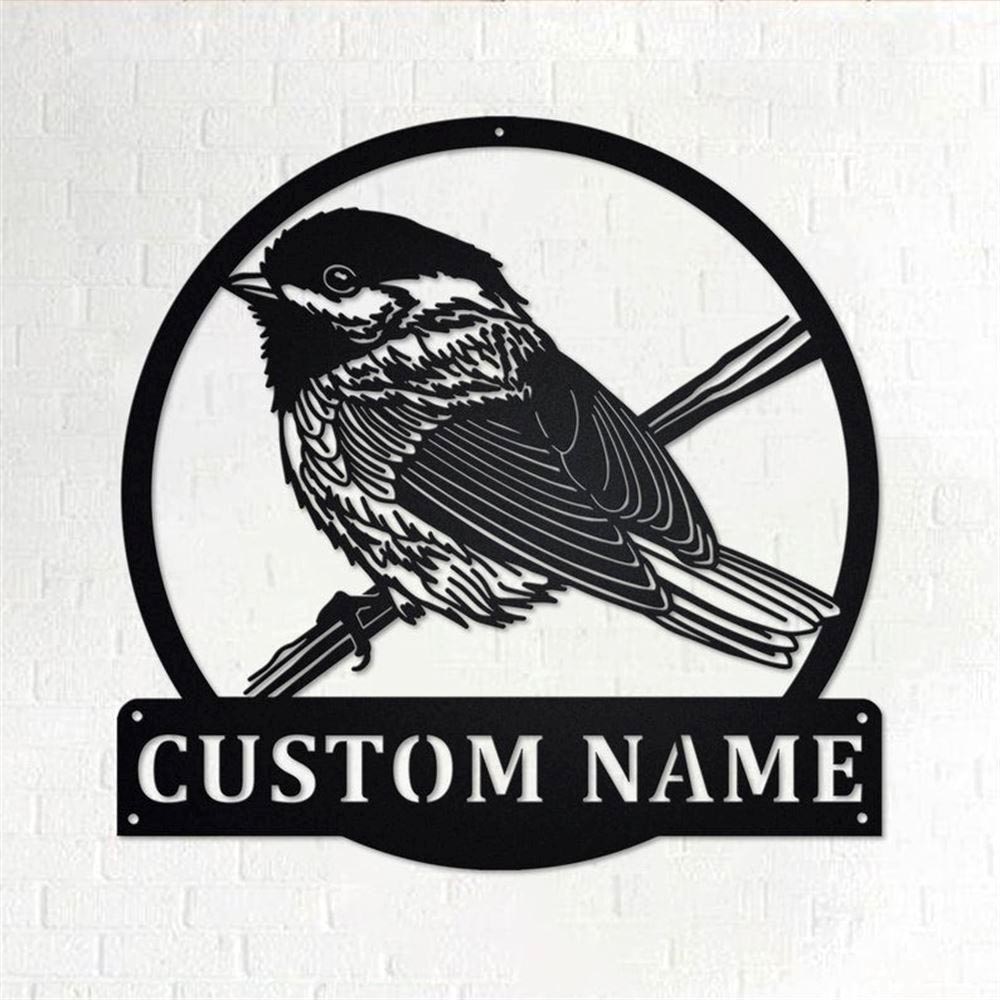 Personalized Metal Monogram Sign, Chickadee Bird Metal Wall Art, Chickadee Name Sign, Chickadee Home Decor