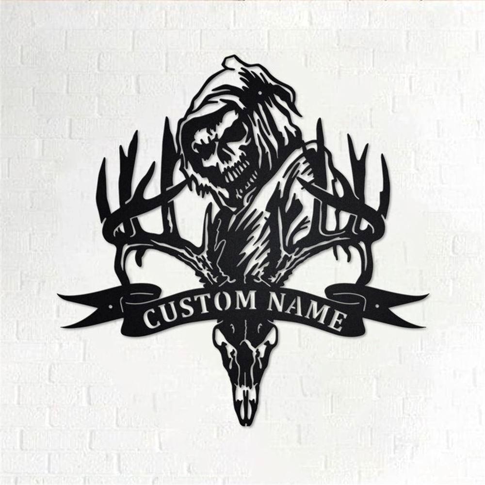 Personalized Metal Monogram Sign, Deer Skull Bone Hunting Grim Reaper Metal Wall Art, Deer Hunting Name Sign, Deer Home Decor