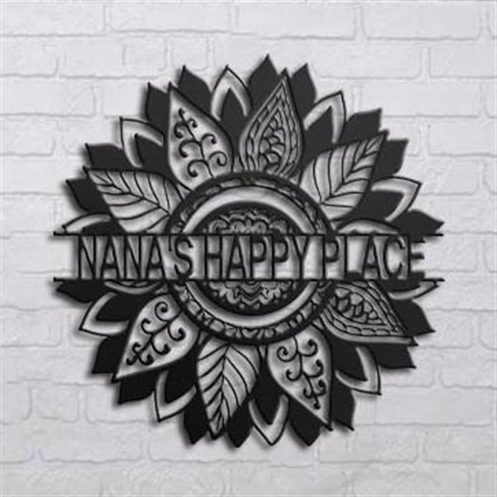 Personalized Metal Monogram Sign, Sunflower Nana's Happy Place Metal Wall Art, Cut Metal Sign