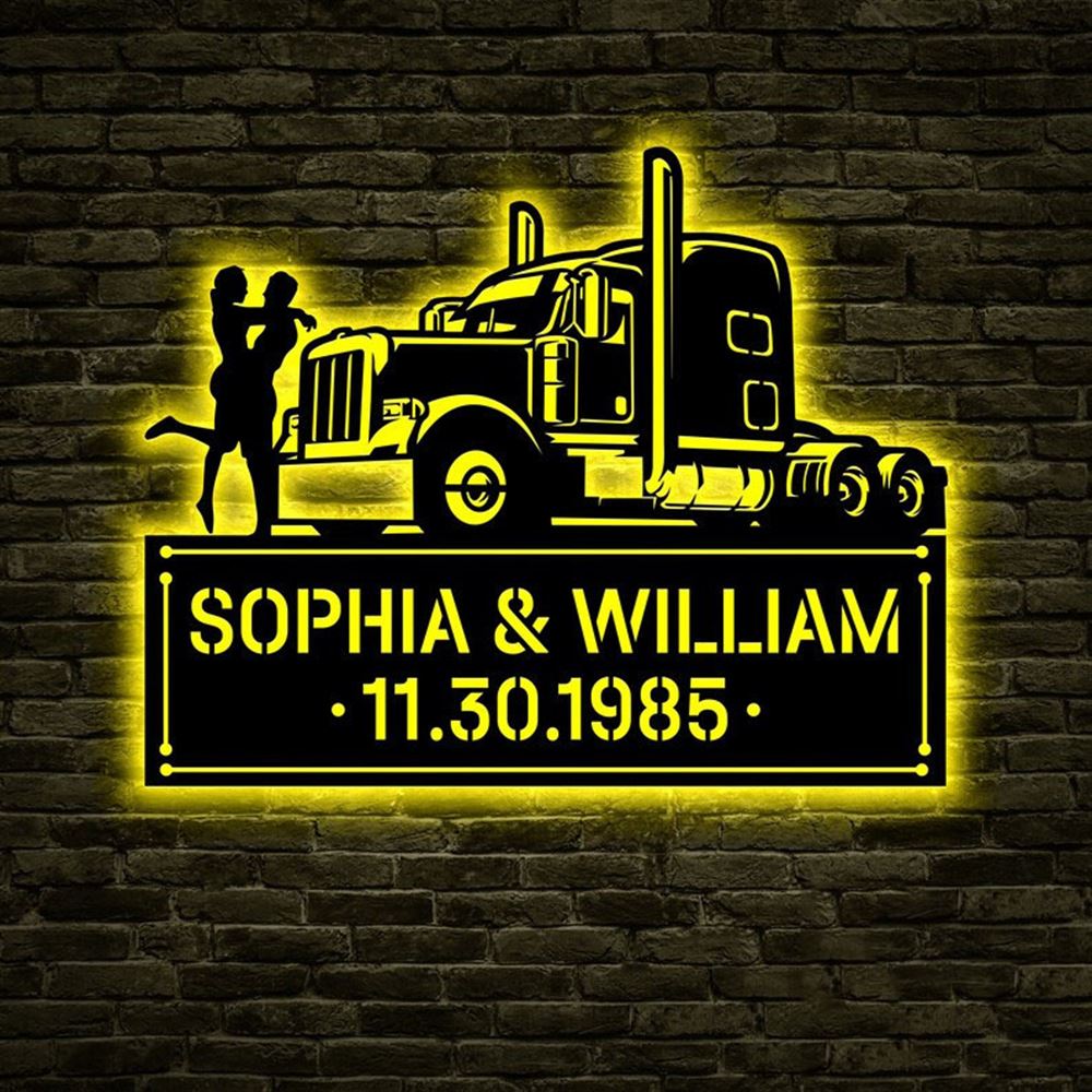 Personalization Trucker Couple Metal Sign, Led Trucker Sign, Anniversary Sign, Metal Wall Decor, Wall Hanging Art, Home Decor Sign