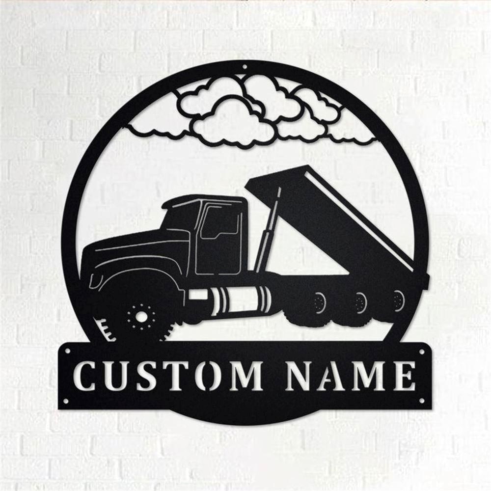 Personalized Metal Monogram Sign, Roll Off Truck Metal Wall Art, Truck Driver Name Sign, Roll Off Truck Home Decor