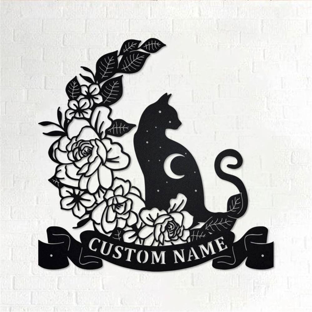 Personalized Metal Monogram Sign, Moon Cat Metal Wall Art, Cat Name Sign, Cat Metal Home Decor