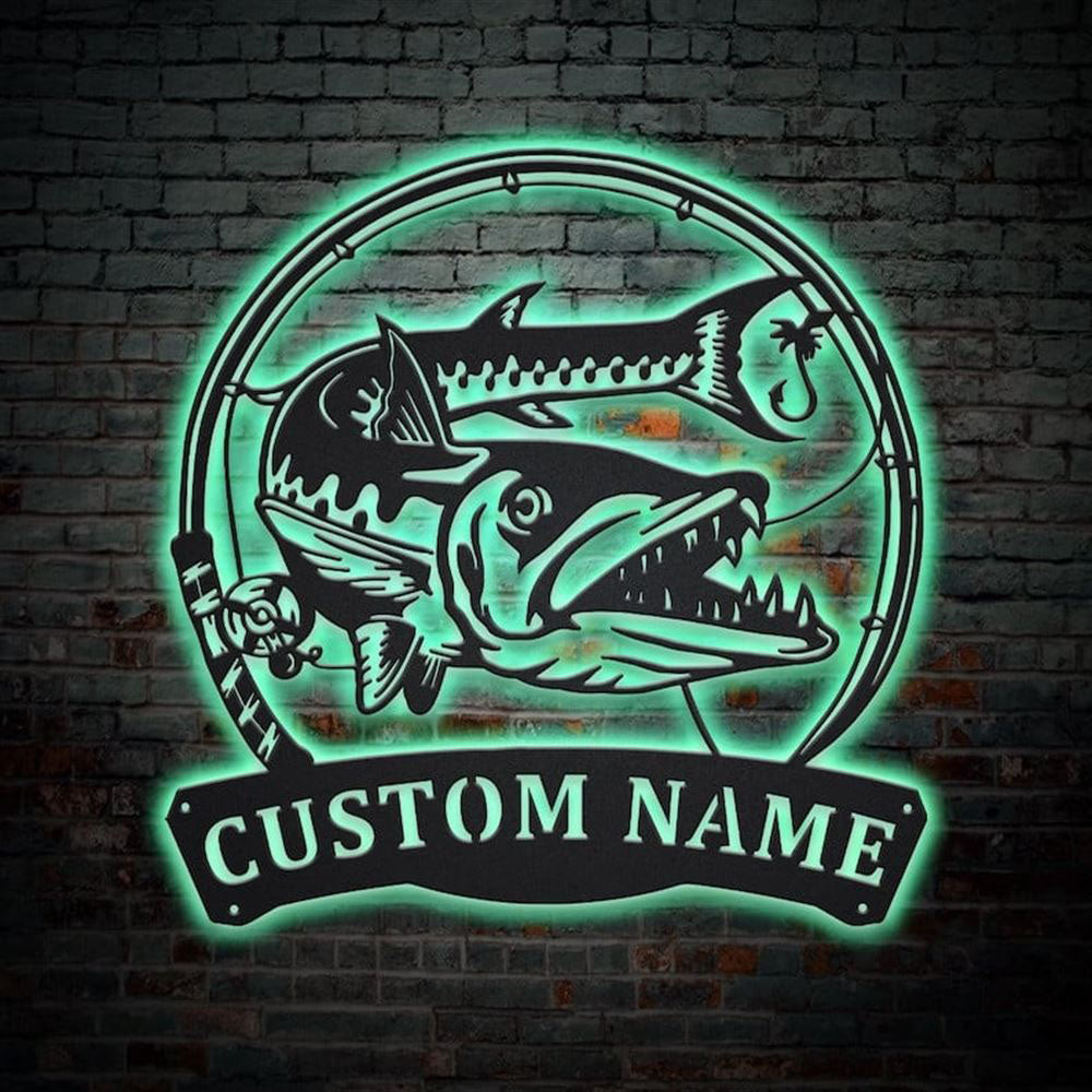 Custom Barracudas Fishing Fish Pole Monogram Metal Sign, Anniversary Gift, Home Decor Sign, Outdoor Sign, Wall Hanging Art