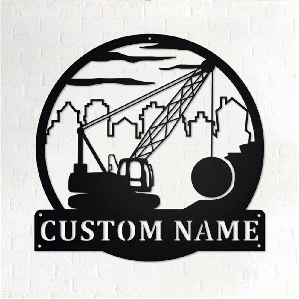 Personalized Metal Monogram Sign, Wrecking Ball Crane Metal Wall Art, Wrecking Ball Crane Name Sign, Wrecking Ball Home Decor