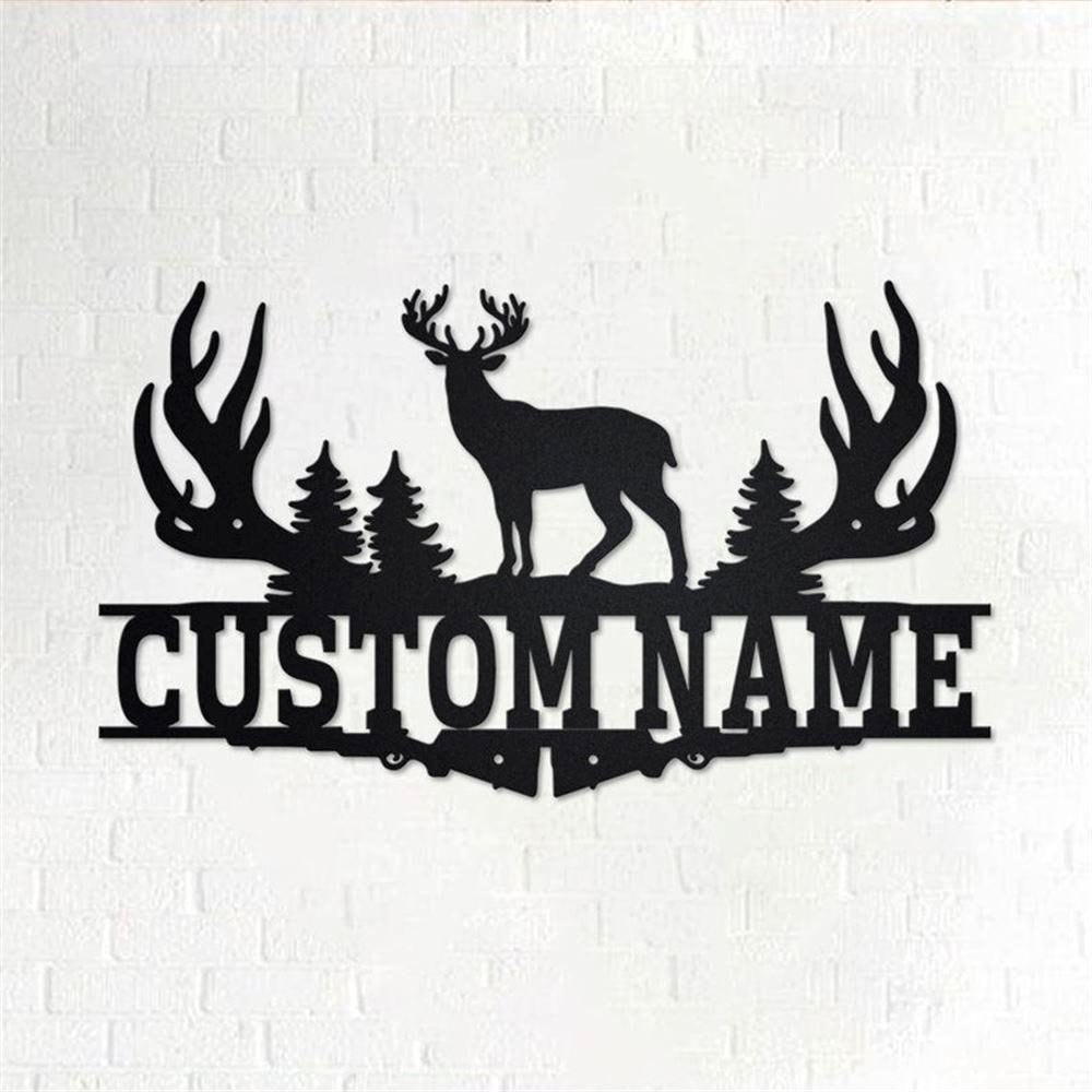 Personalized Metal Monogram Sign, Deer Hunting Frame Metal Wall Art, Deer Hunter Name Sign, Deer Hunting Metal Home Decor