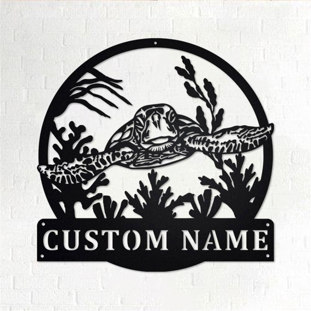 Personalized Metal Monogram Sign, Sea Turtle Monogram Wreath Front Door, Wreath Name Sign, Metal Wall Art