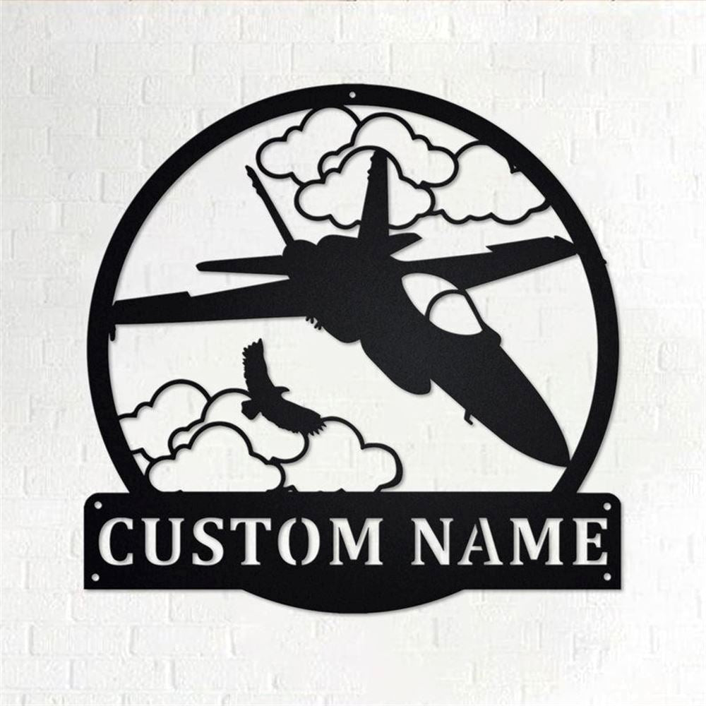 Personalized Metal Monogram Sign, Jet Fighter Metal Wall Art, Jet Fighter Name Sign, Jet Fighter Metal Home Decor