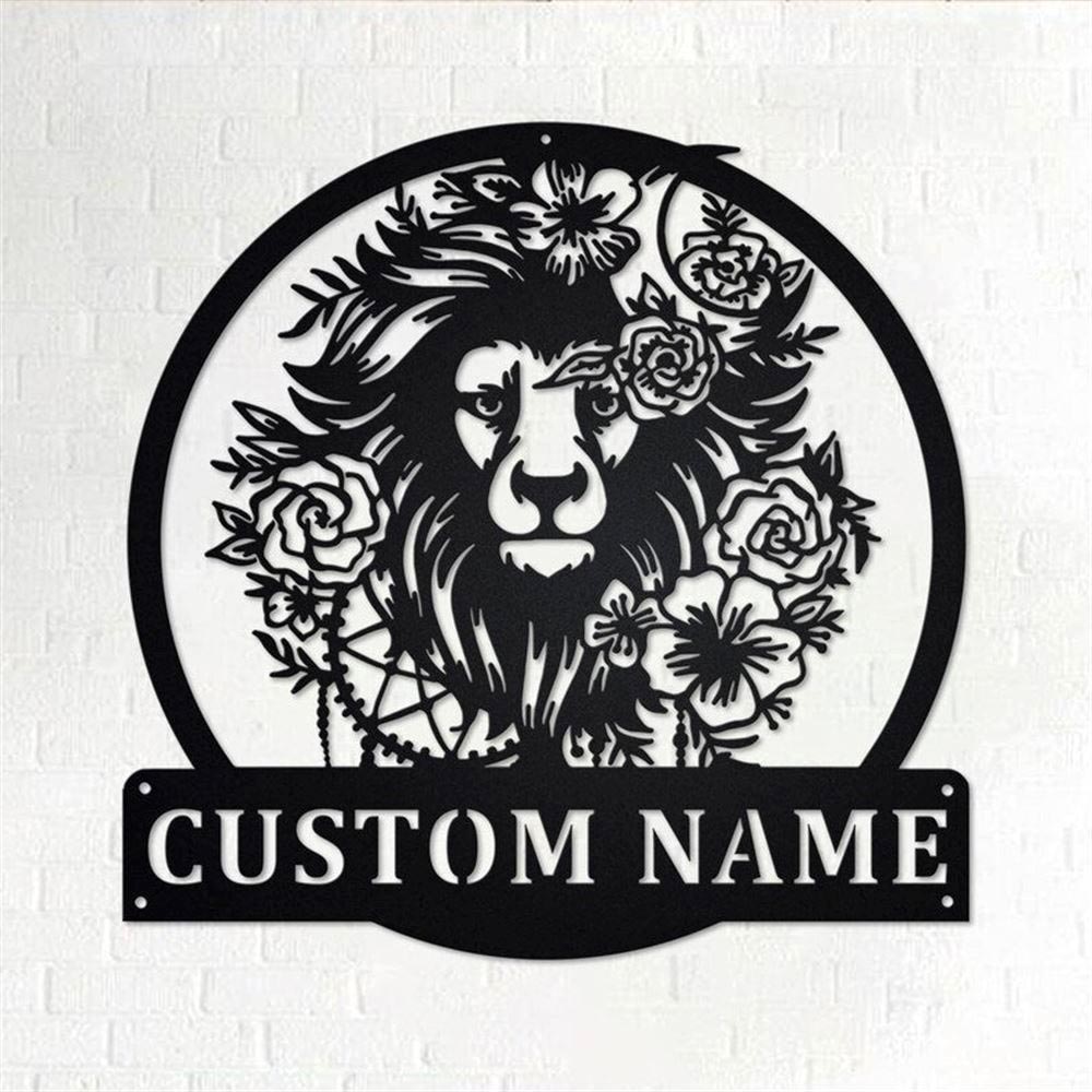 Personalized Metal Monogram Sign, Lion Floral Metal Wall Art, Lion Name Sign, Lion Metal Home Decor