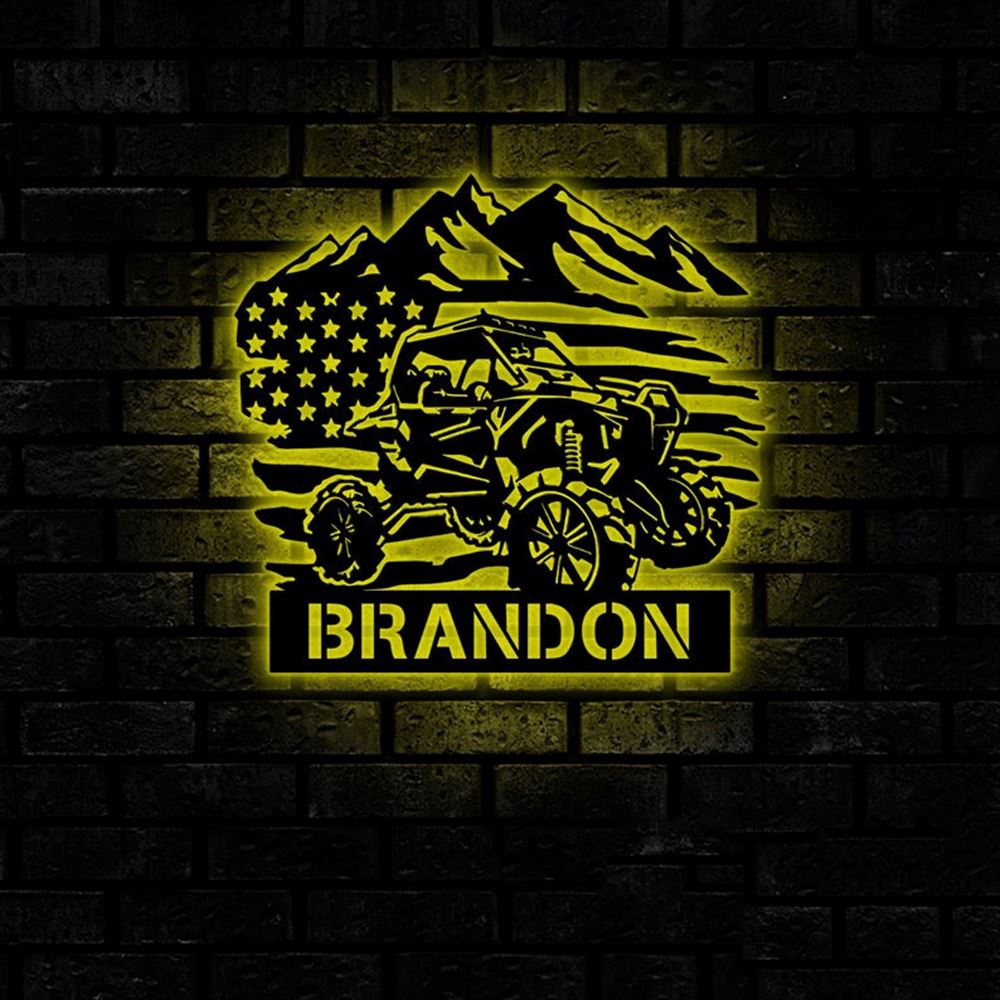 Personalization Atv Metal Wall Art Led Lights, US Flag ATV Sign, Metal Wall Decor, Wall Hanging Art, Home Decor Sign