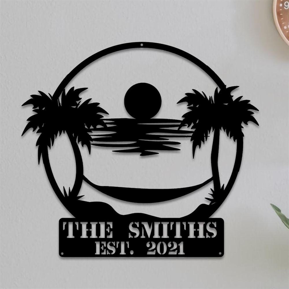 Personalized Metal Monogram Sign, Sunset Beach Metal Sign, Beach Metal Wall Art, Pool Sign, Palm Tree Sign, Metal Sea Art Beach Scene Sign