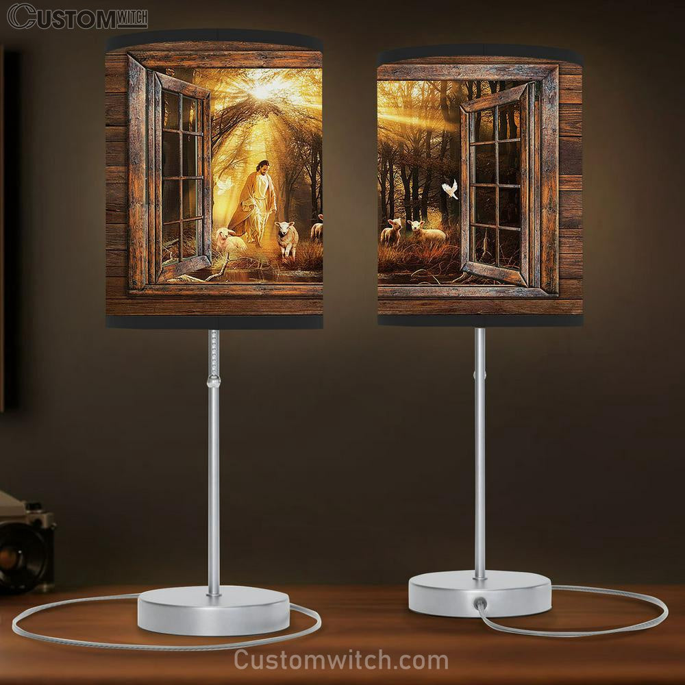 Jesus Walking With Lamps Into The Beautiful Forest Table Lamp Art - Christian Lamp Gift Decor - Bible Verse Table Lamp