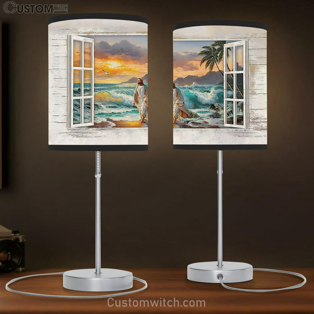 Jesus Walking On The Beach Window Frame Table Lamp Art - Bible Verse Lamp Gift - Christian Bedroom Decor