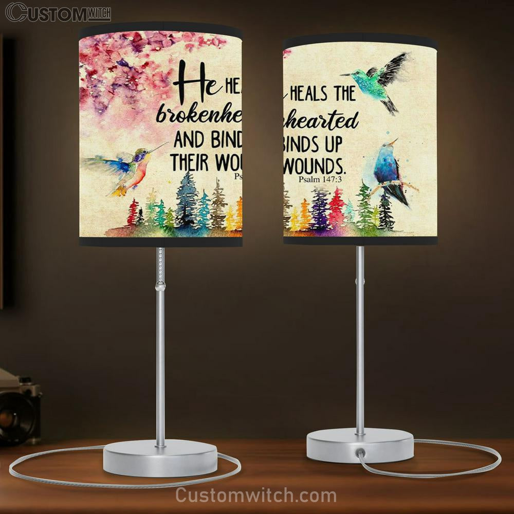 He Heals The Brokenhearted Psalm 1473 Bible Verse Table Lamp Gift - Christian Bedroom Decor