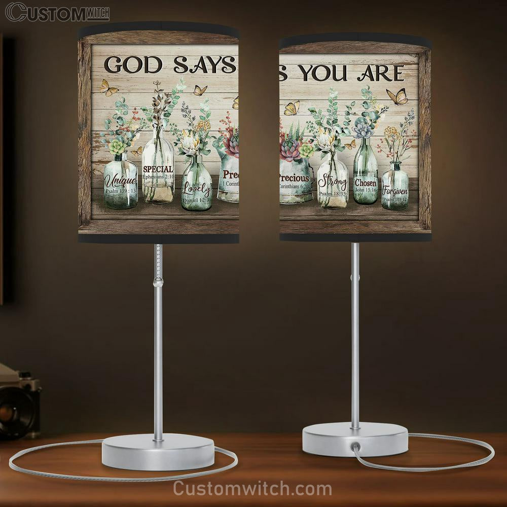 God Says You Are Flower Vintage Table Lamp Gift - Bible Verse Table Lamp - Religious Bedroom Decor