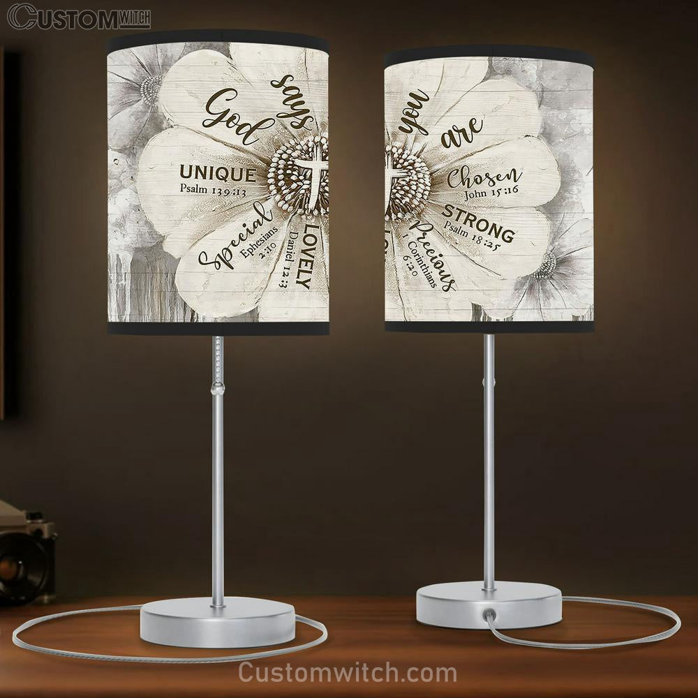 God Says You Are Daisy Table Lamp Wal Art - Christian Wall Table Lamp - Scripture Table Lamp Prints