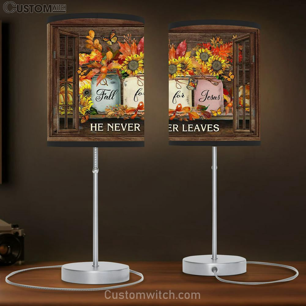 Fall For Jesus He Never Leaves - Thanksgiving Autumn - Christian Table Lamp Gift - Christian Bedroom Decor