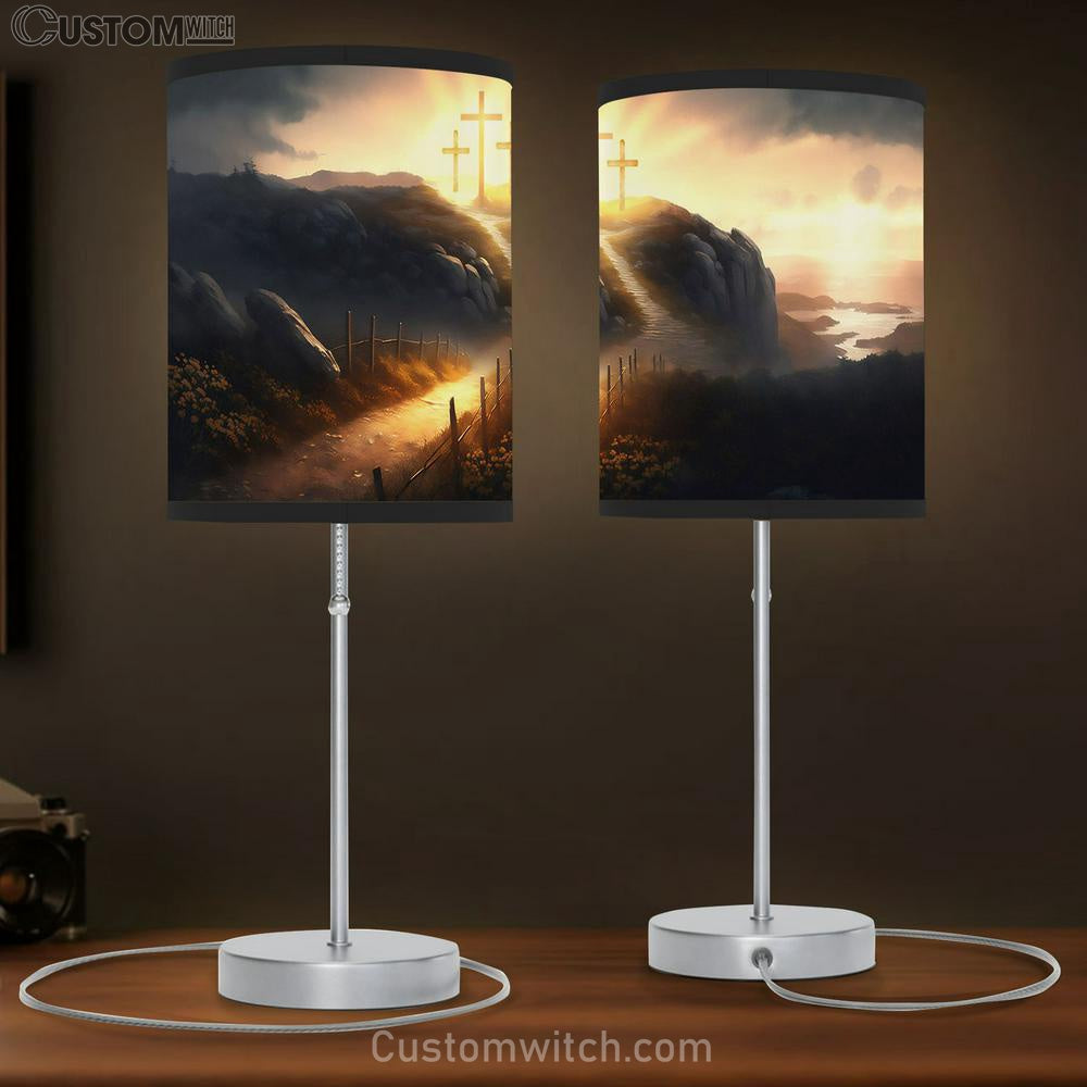 Empty Tomb With Three Crosse Table Lamp Pictures - Faith Art - Christian Table Lamp Gift Decor